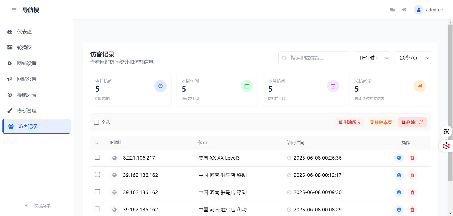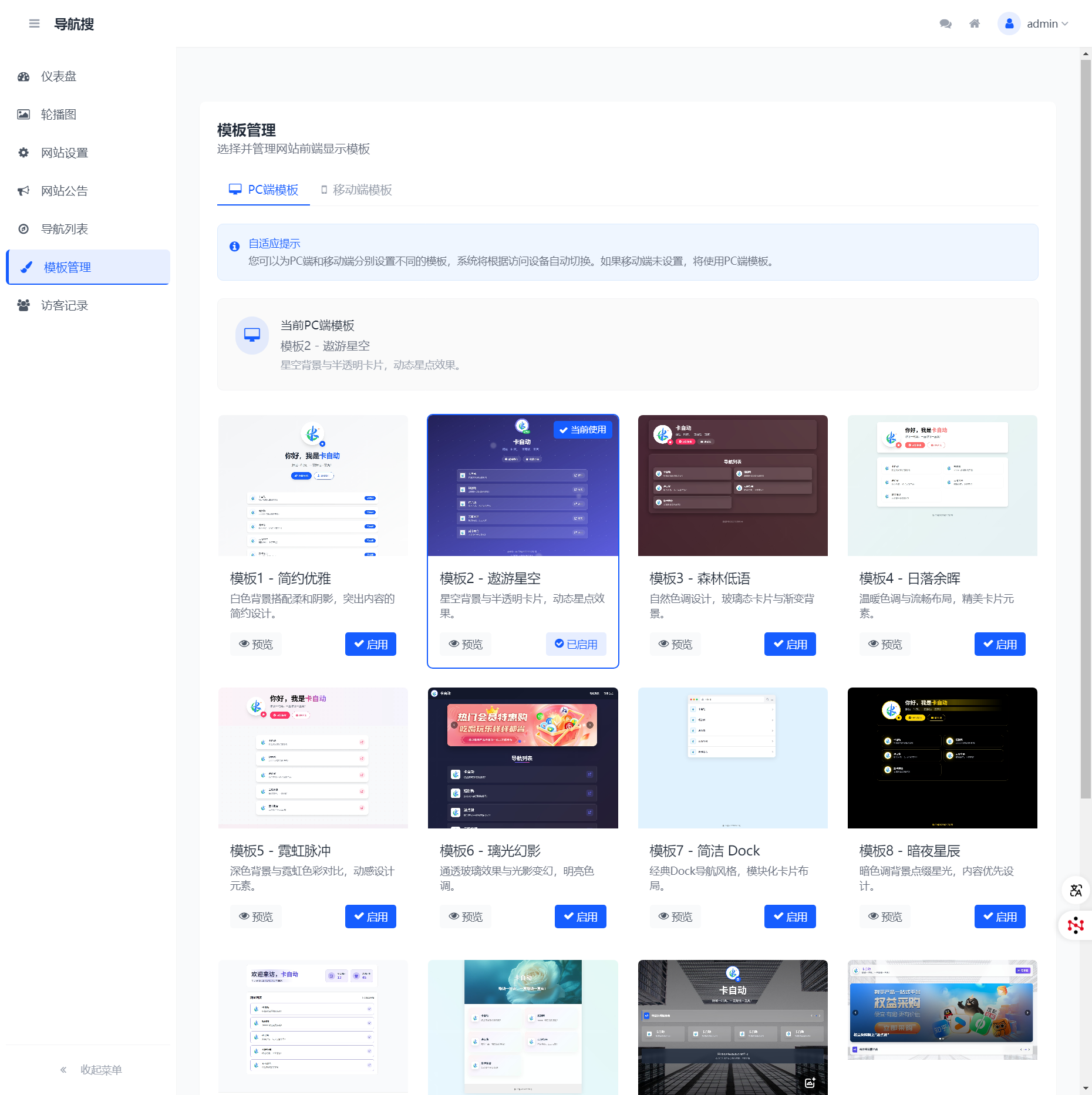 提供轮播图、网站设置、导航列表、访客统计等多种数据的展示与查询功能,提供API接口文档,支持自主开发模板。